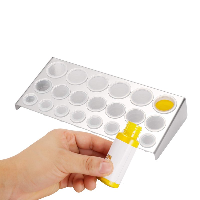 - 3.PACKING INClUDE:Stainless steel tattoo pigment ink cup holder have 21 holes,inclued large 6 holes, middle 7 holes and small 8 holes