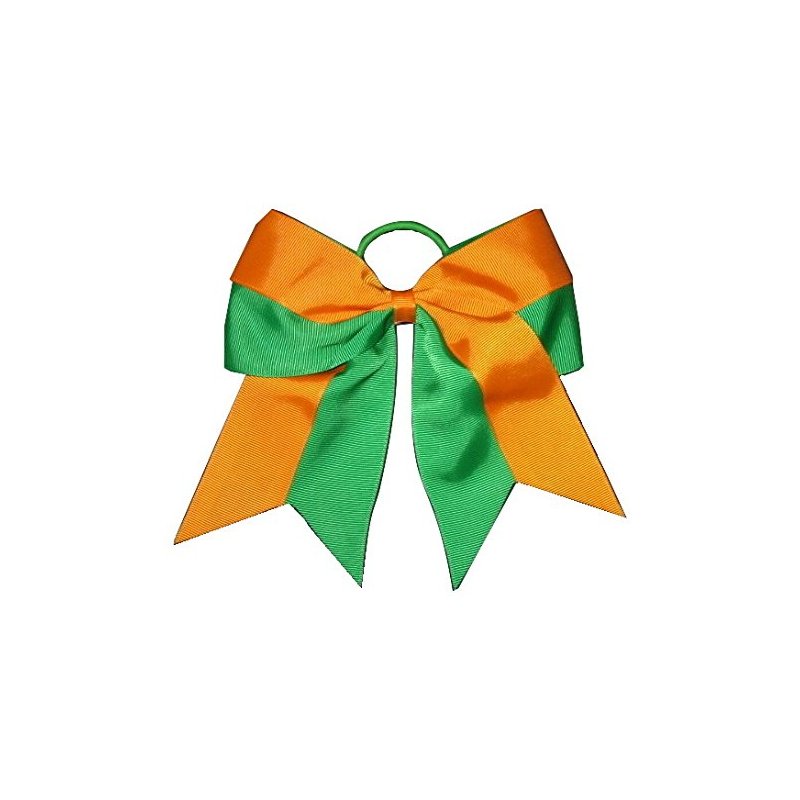 NEW "Two-Tone ORANGE & GREEN" Cheer Bow Pony Tail 7 Inch Girls Hair Cheerleading Dance Practice Football Games Uniform Elastic Grosgrain Ribbon