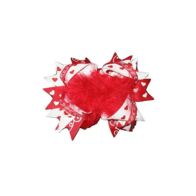 This listing is for a Boutique Funky Fur and Loopy Grosgrain Ribbon Hairbow! FUNKY & FUN! These are hand-made by me! The Hairbow is made out of white and red grosgrain ribbon with Hearts and Swirls! These Boutique Bows are approx. 5 inches wide. The Bows are mounted on an Alligator Clip lined with a red ribbon! Great for Valentine's Day, Birthday Parties, Pageants, Cheerleading, Summer Play Dates, Vacations, Birthdays, and more! Your daughter will love these bows! Check out my store for other hairbow colors & styles!