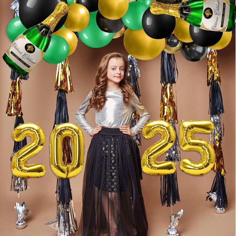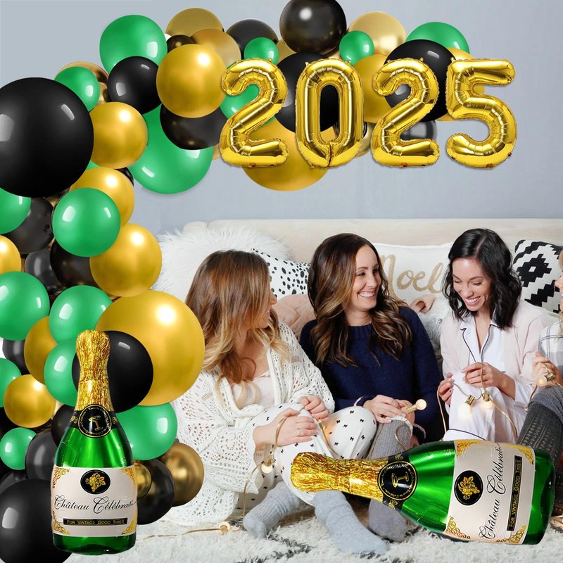 - New Years Decorations: you will get 2025 Foil Balloon(16 inch), 2pcs Beer Champagne Foil Balloon,75pcs latex balloons 10 inches ( Black Green Gold); 3 latex balloons 18inches ( Black Green Gold);30 latex balloons 5 inches ( Black Green Gold),prefect combination to meet your new year decorations need.