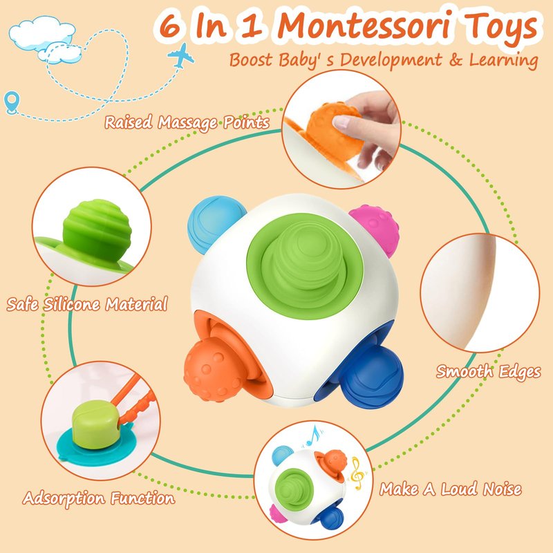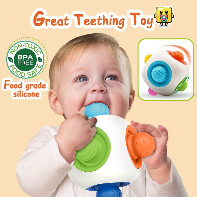 Newborn Toys Toddlers Baby Ball Toy, Baby Montessori Toys Newborn Infant Toys Rattle Baby Teether Chew Sensory Bumpy Ball Toy, Travel Toys with Suction Cups Sensory Activity Toy for 0-12 Months