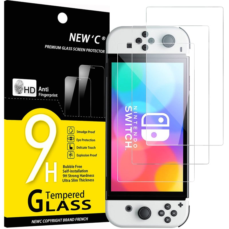 - NEW'C Nintendo Switch (modèle OLED) Tempered Glass Screen Protector, delicate touch: coated on the back with a solid silicon adhesive which makes installation easy and attaches the film firmly so as not to affect the sensitivity of the touch screen