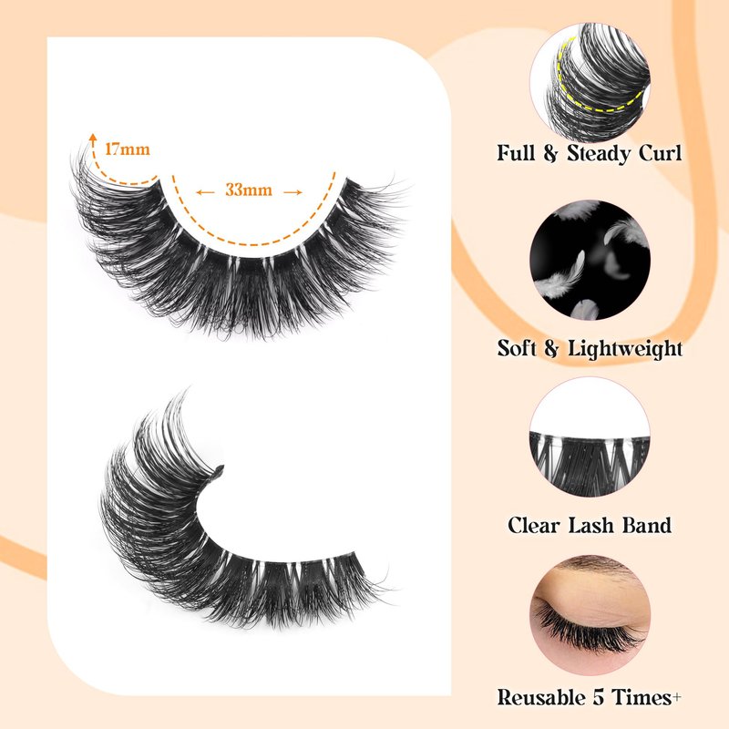 - 【Soft & Lightweight & Reusable】: The wispy false eyelashes adopt vegan premium silk synthetic fiber and updated design, softer, more lightweight, reusable over 5 times and infinitely closer to natural eyelashes!