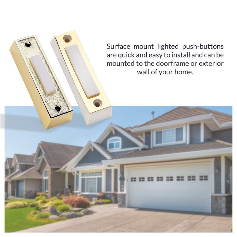 - Surface mount lighted push-buttons are quick and easy to install and can be mounted to the doorframe or exterior wall of your home.