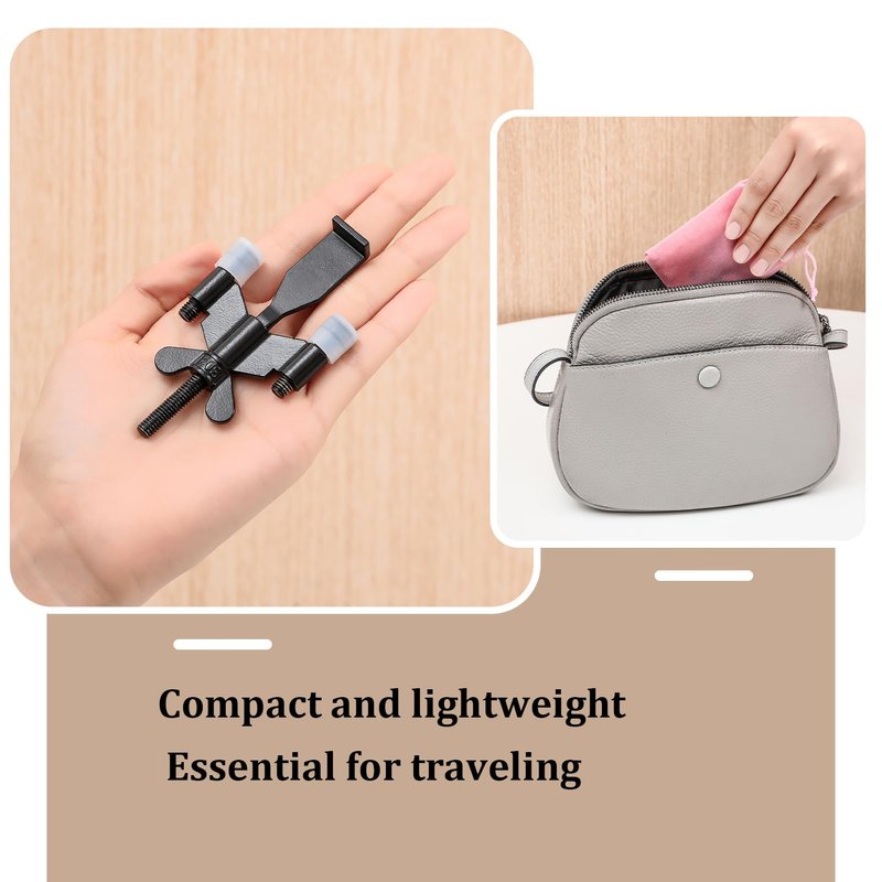 - 🔒【EASY INSTALL & LIGHTWEIGHT】:No tools needed, just put the latch into the door lock frame, close the door and tighten the screws. The hotel security door lock is equipped with a small bag, travel can be put into the pocket backpack, does not take up space, small body big role.