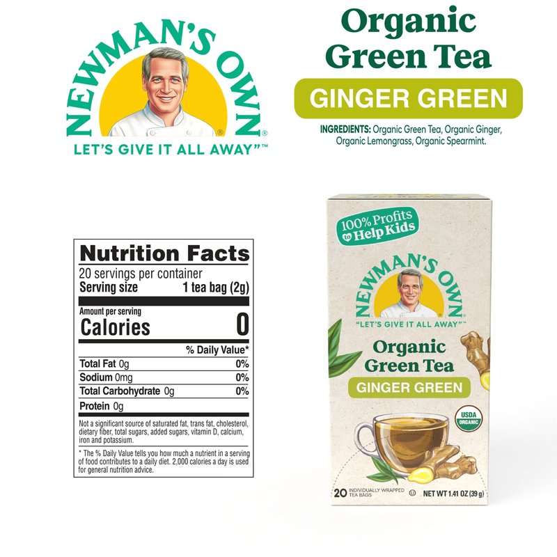 - USDA CERTIFIED ORGANIC AND KOSHER- Newman's Own Ginger Green Tea is organically grown according to USDA standards.