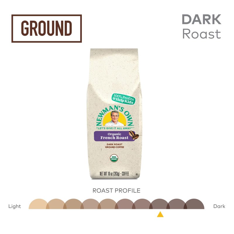 Newman's Own Organics Newman's French Roast, Ground Coffee, Fair Trade Certified, Dark Roast, Bagged 10oz