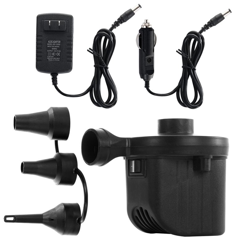 - Newpol Inflatable Bed Pump: It can not only inflate items but also deflate products by sucking air out,It includes a vehicle use DC 12V power adapter (L: 5.2FT) and a home use AC 110V-240V power adapter (L: 4.6FT)