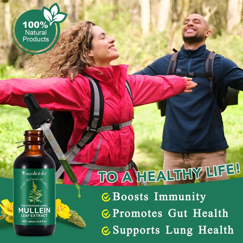 - Mullein Drops for Lung:Mullein leaf is known for its soothing properties and traditional use in supporting respiratory health and overall wellness.Mullein leaf Extract can effectively remove accumulated mucus, clearing your airways, Let you experience more pleasant breathing. This liquid form of mullein extract for lungs organic ensures that our lung cleanse mullein drops for smokers are easy to use.