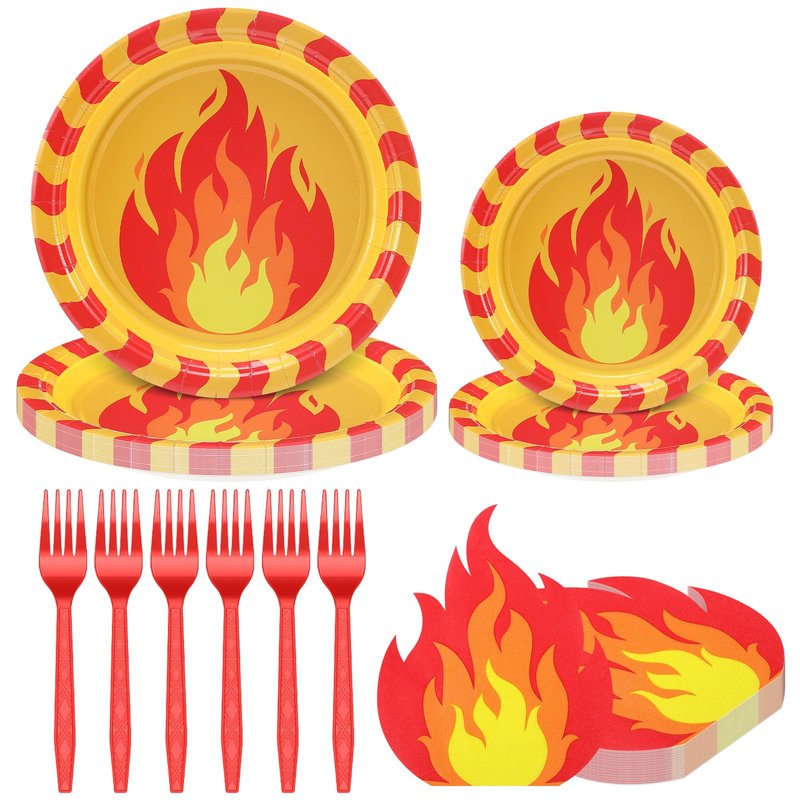 - Fire Theme Dinnerware Set: our package includes 25 pcs 9 inches fire plates, 25 pcs 7 inches fire plates, 25 red forks, 1 bag fire napkin ( 50 pcs) , comprehensive and nice in combination, designed for fire theme party, well meeting your needs for use, replacement and sharing