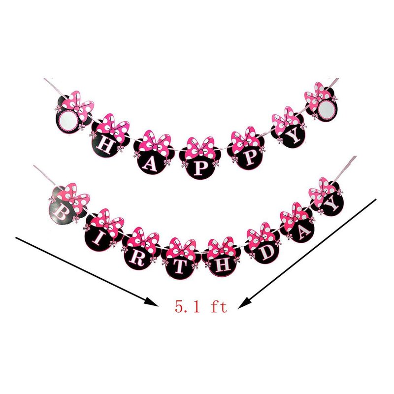 NEWTGAN Mouse Ears Happy Birthday Banner, Mini Mouse Style Party Decorations, Party Supplies, Baby Shower Decor for Girls (style1)