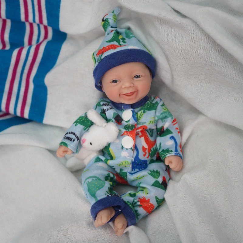 - 【Features】This is a mini reborn baby doll, anatomically correct boy. Size: 7 inch from head to toe, weighs 14 OZs, palm-sized, mini and portable; Eyes: can't blink; Washable, easy to care and maintain.