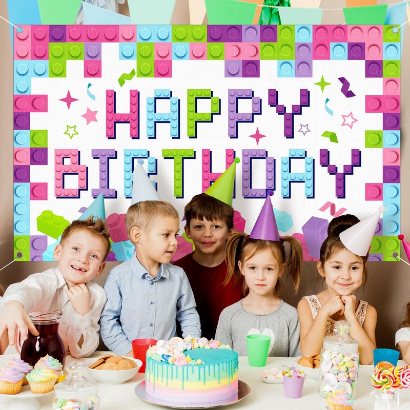 - Package Include: you will get 1 pieces of building blocks birthday photography banner with 1 long rope for easily hanging; The patterns and colors are well printed, providing you with a joyful colorful building blocks party