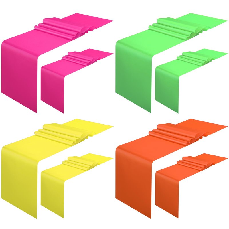 - Fluorescent Design: the package includes 8 pieces of party table runners in 4 colors, including fluorescent green, fluorescent yellow, fluorescent pink and fluorescent orange, suitable for indoor and outdoor, can meet your party decoration needs