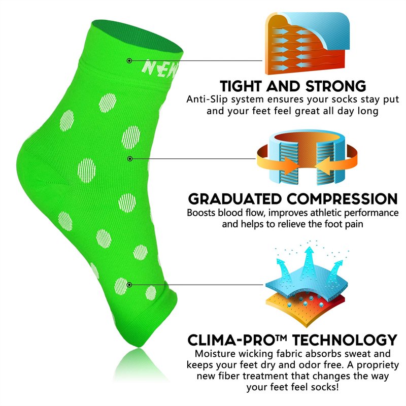 - CLIMA-PRO TECHNOLOGY – Our ankle sleeves provide superior relief of plantar fasciitis, heel spurs, ankle/arch support, and foot pain. They can help to reduce blood pooling and banish discomfort, as well as help with Achilles tendonitis, edema relief, and heel pain. Our compression socks can be worn after a rigorous activity to help your feet recover and to reduce swelling and soreness in the foot, ankle, and lower leg.