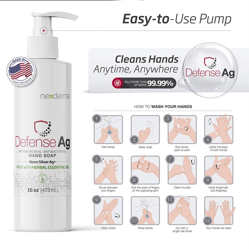 NEXDERMA Defense Ag Hand Soap with Coconut oil, Oat extract, Vitamin E and Herbal Essential Oil | Paraben free, Moisturizing and Effective Daily Hand Wash, Cleanser Liquid | 16oz (473ml Each) - Pack of 1