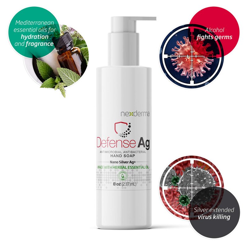 NEXDERMA Defense Ag Hand Soap with Herbal Essential Oil | Paraben free Moisturizing Everyday Hand Soap | Multipack - 8 Oz (236ml Each) - Pack of 4