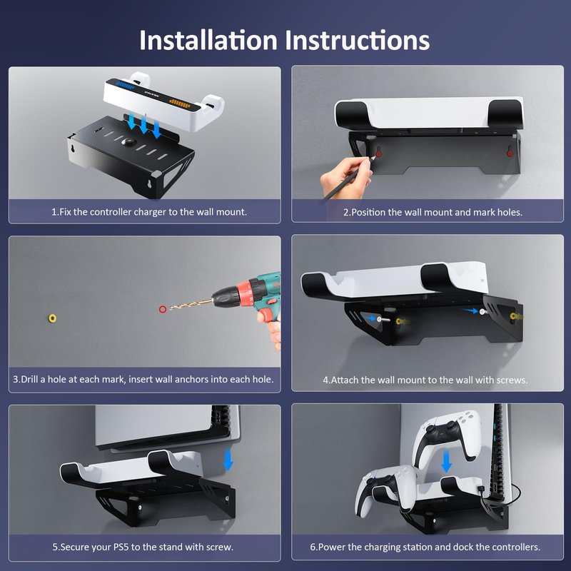 - 【Organizes Multiple Accessories】 The NexiGo wall mount set can securely store your PS5 console, two controllers, and a pair of headphones on a single wall bracket, freeing up valuable space. 【Note:】Not compatible with PS5 Slim model..