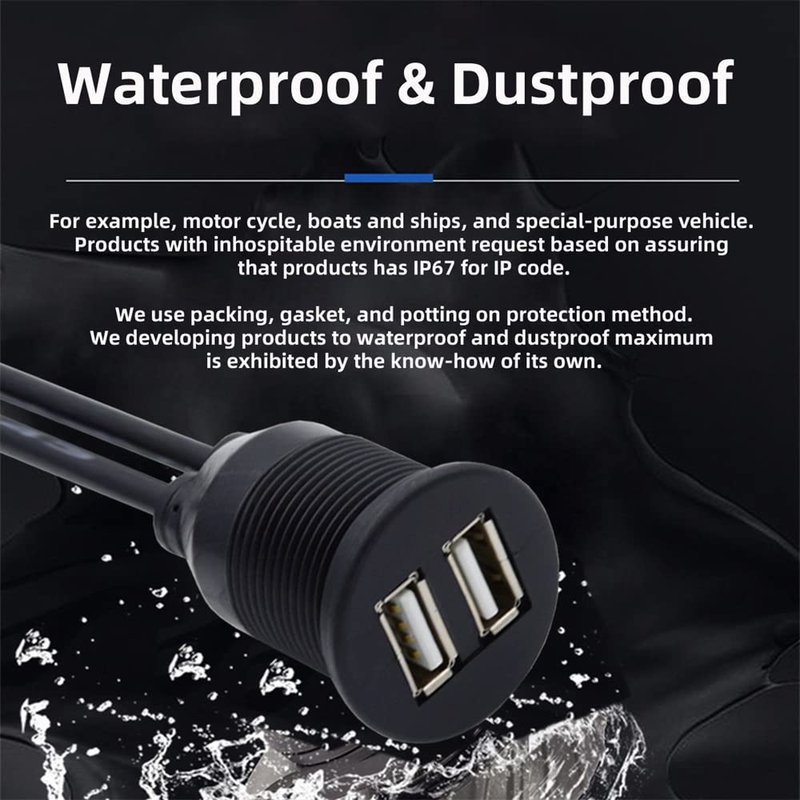 1m Waterproof Dustproof 480Mbps USB2.0 Type-A Male to Dual Female Hub Extension Data Power Cable Car Panel Mount Design