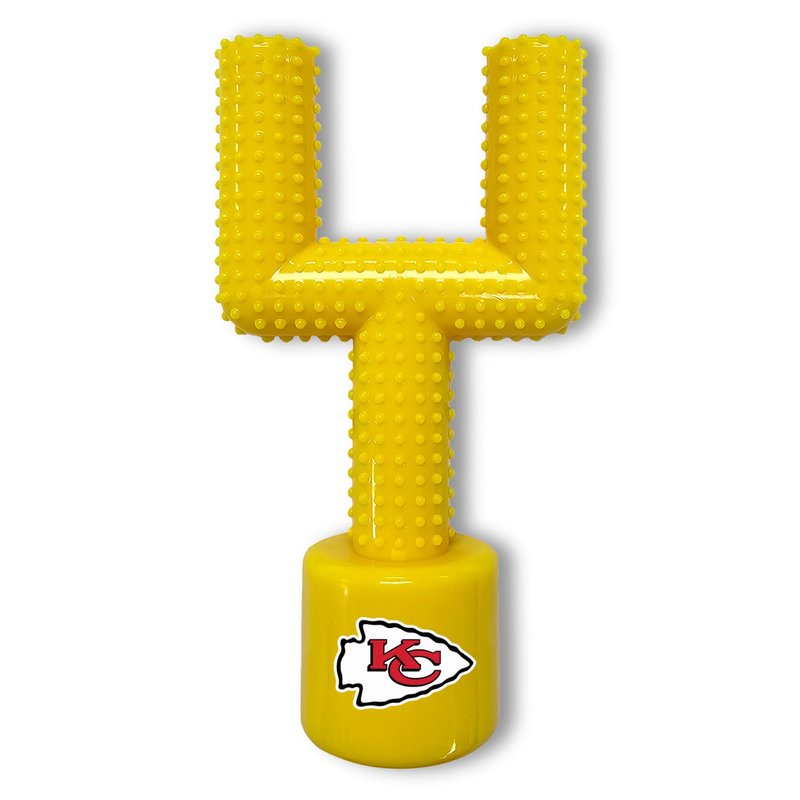- - Authentic NFL Licensed Goal Post Flavored Dog Toy: The Pets First Mega-Chew NFL HARD NYLON FOOTBALL GOAL POST CHEW TOY proudly displays your favorite team's logo and colors, making it the perfect accessory for fans who want to share their team pride with their furry companions. What's more impressing than a Real NFL Licensed Dog Toy WITH TASTY BACON FLAVOR in the color and shape of a Goal Post??