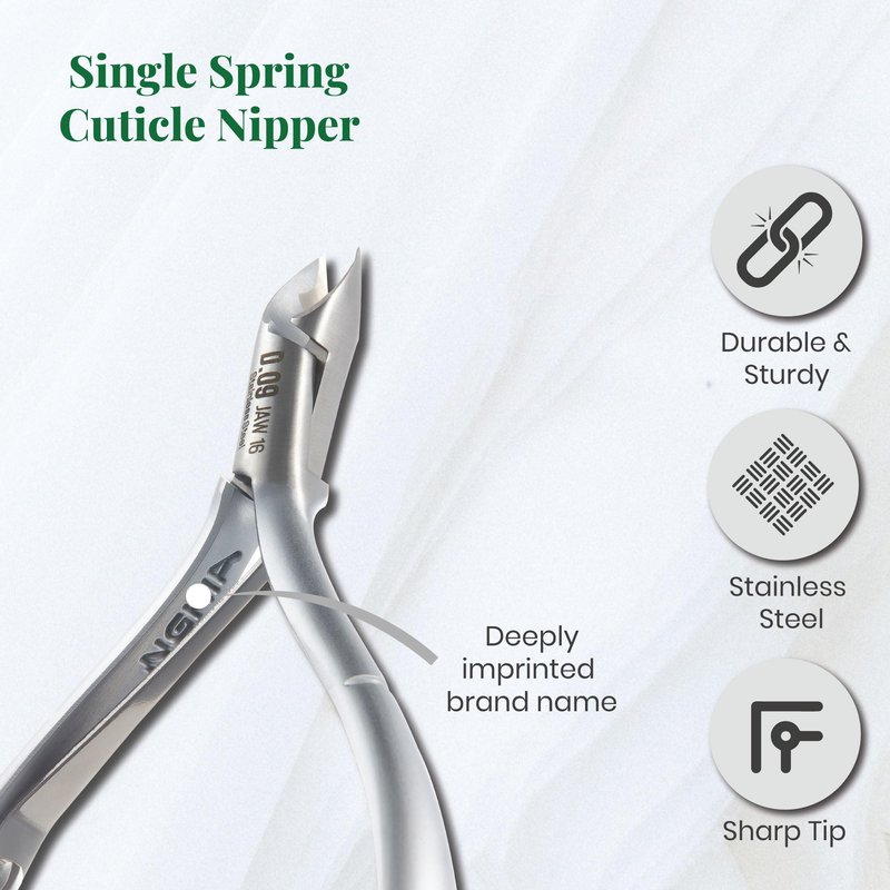 Introducing our premium Cuticle Nipper – the ultimate tool for achieving flawless nail care and maintaining immaculate cuticles. Crafted with precision and designed for comfort and support, our Cuticle Nipper is an essential addition to your grooming routine. Our NGHIA Cuticle Nipper - D-09 (Stainless Steel) features sharp, surgical-grade blades that effortlessly trim excess cuticles with utmost precision. Achieve clean and well-defined nail edges for a polished look. Designed with your comfort in mind, the ergonomic handle provides a secure grip, reducing hand fatigue during use. The smooth, easy-to-hold design ensures steady control for accurate cutting. Crafted from high-quality stainless steel, our NGHIA Cuticle Nipper - D-09 (Stainless Steel) is built to last. The rust-resistant material ensures long-term performance and easy maintenance. Each Cuticle Nipper comes with a protective cap for safe storage. This cap not only ensures the longevity of the sharp blades but also guards against accidental nicks and cuts when not in use. Beyond cuticle care, our nipper can also be used for precision tasks such as removing ingrown nails or trimming hangnails, making it a versatile tool for your nail care routine. Whether you're a professional nail technician or a DIY enthusiast, our NGHIA Cuticle Nipper - D-09 (Stainless Steel) guarantees salon-quality results from the comfort of your home. Compact and lightweight, the Cuticle Nipper is perfect for on-the-go touch-ups. Slip it into your makeup bag or travel kit to maintain well-groomed nails wherever you are. Invest in the finest quality for your nail care regimen with our NGHIA Cuticle Nipper - D-09 (Stainless Steel). Experience the ease of precise cuticle trimming, ergonomic design, and lasting durability. Elevate your nail care routine and showcase impeccably manicured nails with our reliable and sleek Cuticle Nipper.
