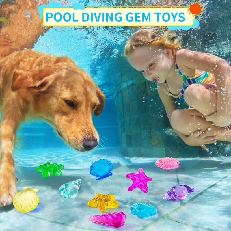 You will get 38 diving gemstone swimming pool toys,marine animal shaped gemstone toys , rich colors and diverse shapes, realistic appearance and texture, which can better attract people's eyes【Make a splash】:Includes 38 translucent, brightly colored, jewel-cut pieces in 4 appealing shapes: sea shells, stars, oval and conch shaped bath time, swim time, anytime! each pretty piece is made of smooth solid plastic that's strong enough to withstand rough play in and out of the wate,(3 years+)
