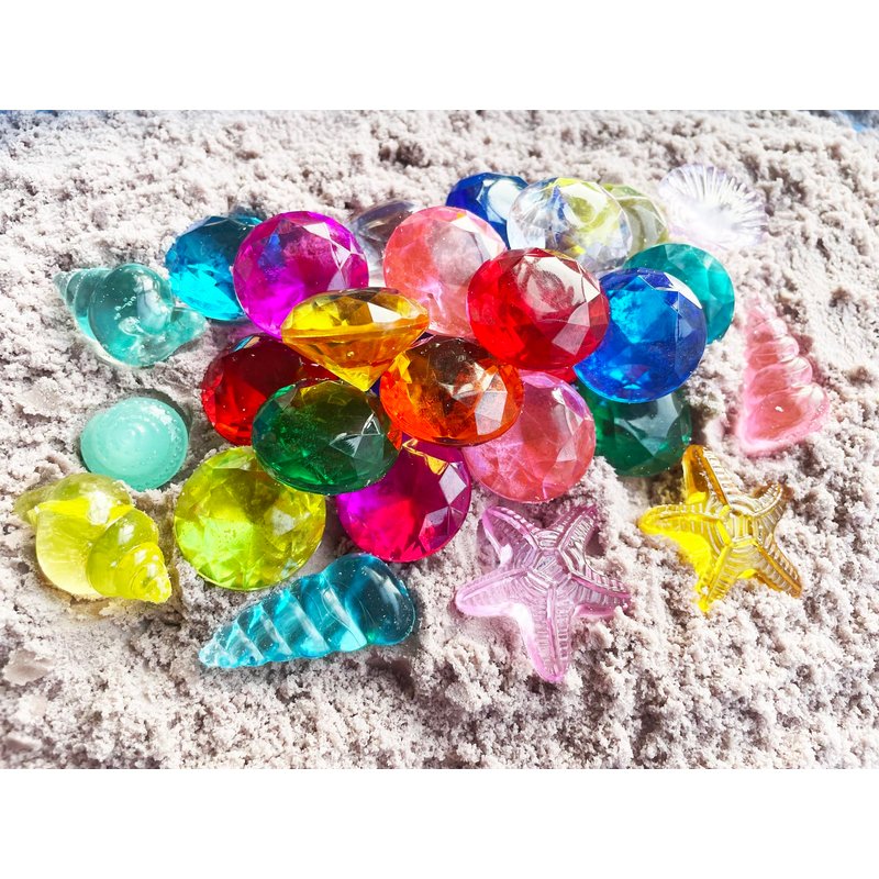 - High Quality:These lifelike gems are sparkling and colorful, with crystal diamond shapes, shells, starfish, snail shapes and more. It effectively captures your attention to start a treasure hunt with your children and their friends, making for a fun and interesting time for the kids.