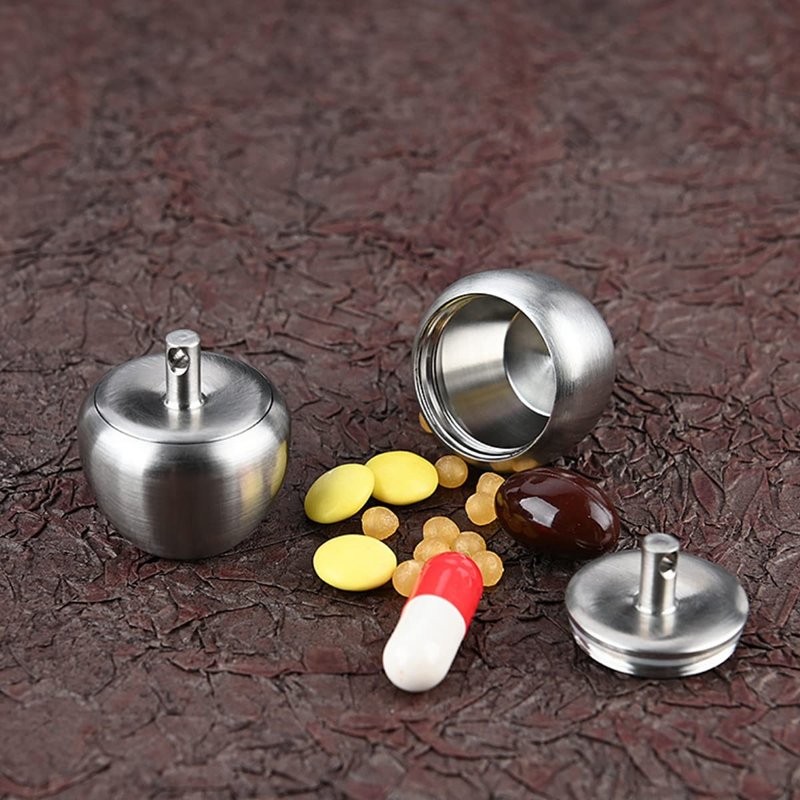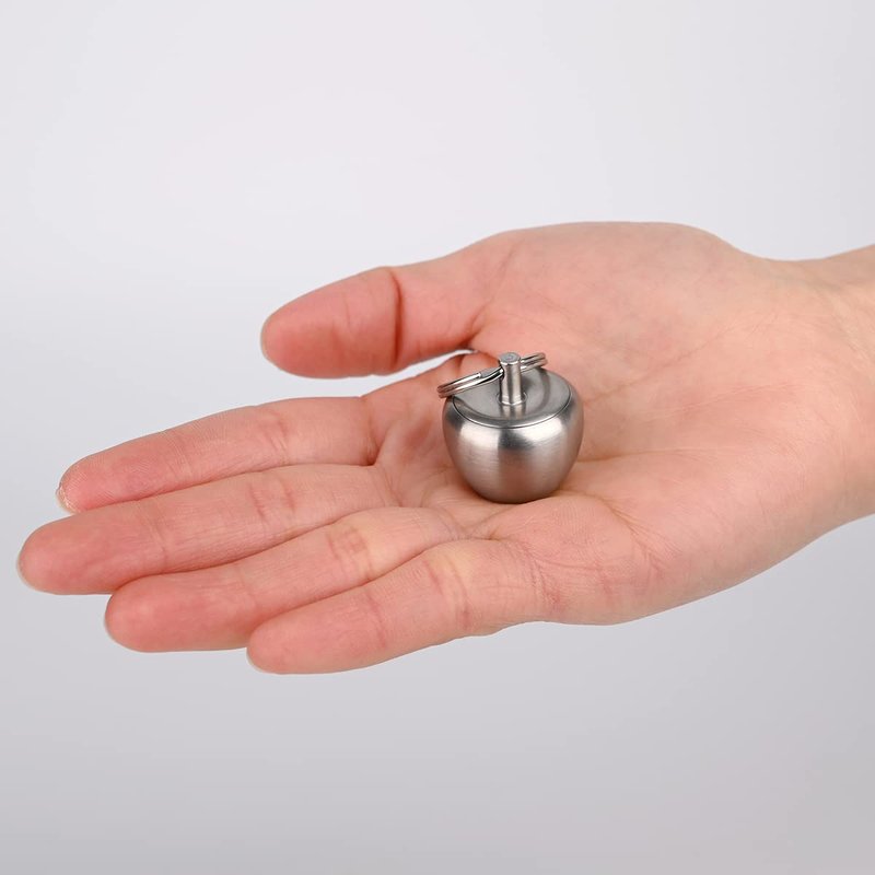 NHDT HN02 Stainless Steel Keychain Pill Holder, Apple Pendant Design, Portable Waterproof Pill Box Container for Purse or Pocket or Necklace, Mini EDC Pill Case for Outdoor Travel.