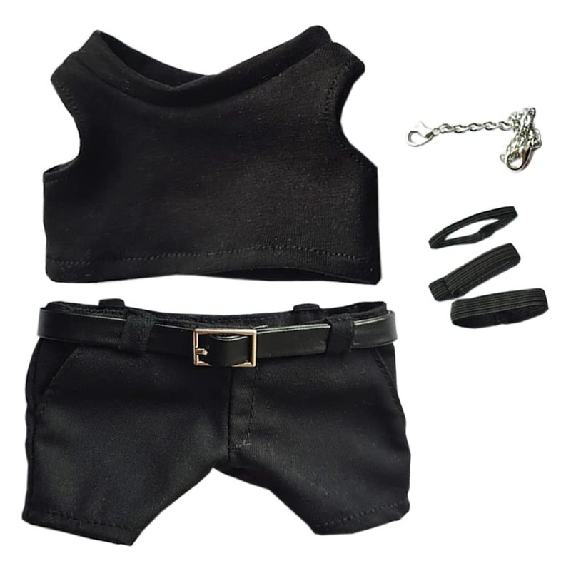 niannyyhouse 20cm Plush Doll Clothes Black Vest Pants Belt Accessories