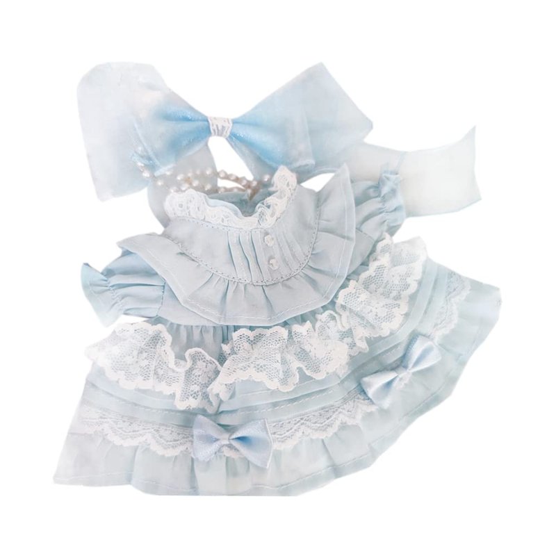 niannyyhouse 20cm Plush Doll Clothes Solid Lace Dress Headwear 8in Doll Accessories Dress Up (Light Blue)