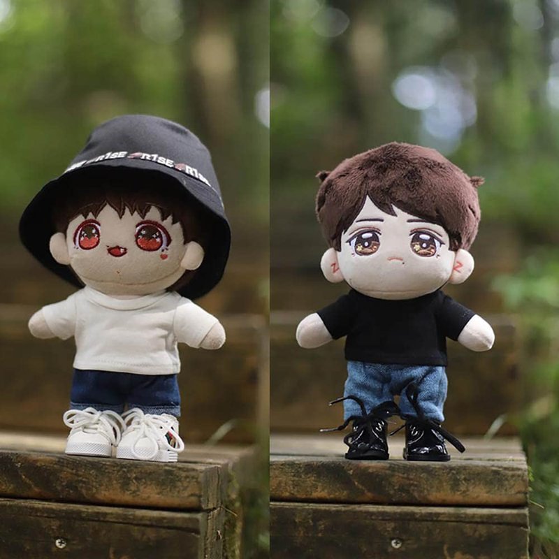 niannyyhouse Doll Clothes 20cm(7.8in) Plush Doll Clothes T-Shirt*2 Short Sleeve Black and White T-Shirt Doll Dressup (20cm)