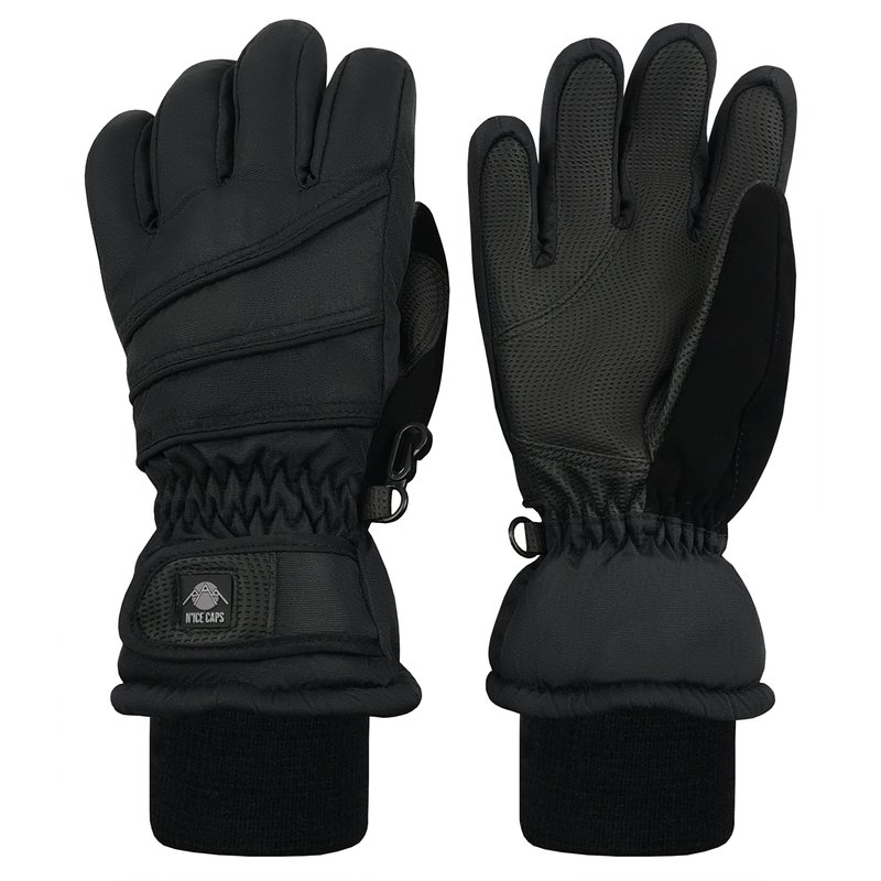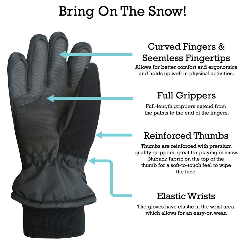 - WATERPROOF AND WARM: The gloves are insulated with 3M Thinsulate for warmth in cold winter temperatures. The gloves are fully waterproof and will keep kids hands dry in wet, snowy and icy conditions. The gloves also have 2.5 inch knitted cuff that can be tucked underneath your kid's jacket and coat sleeves to prevent snow from getting inside the gloves.