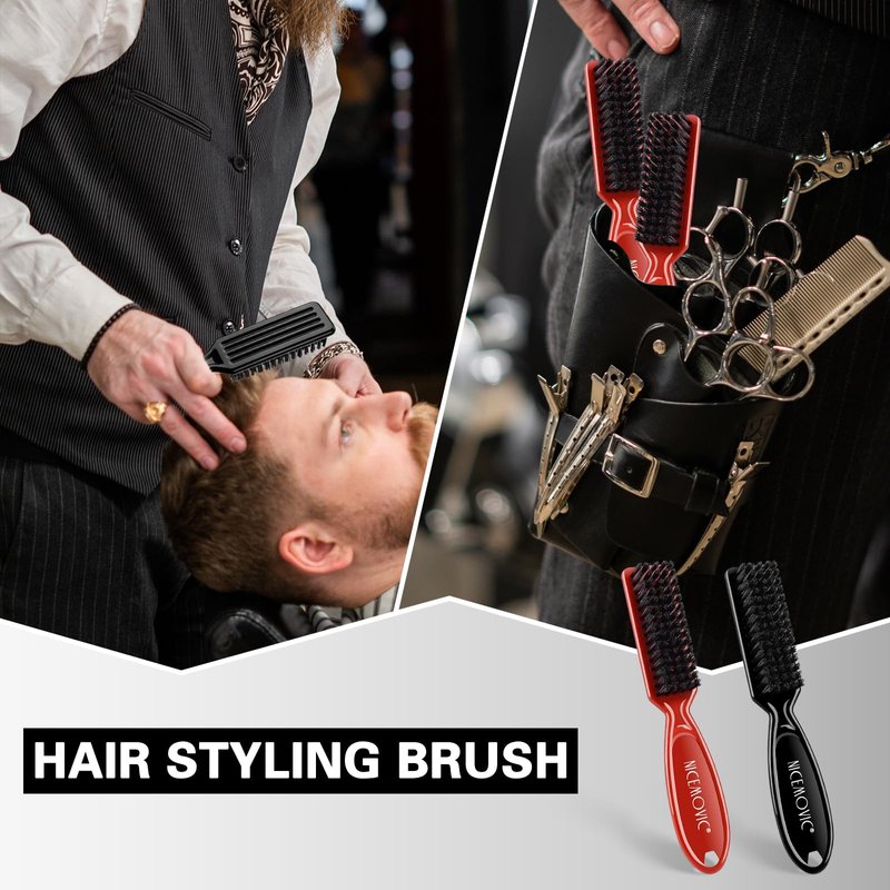 NICEMOVIC 10 Pcs Barber Clipper Brushes (Black&Red)