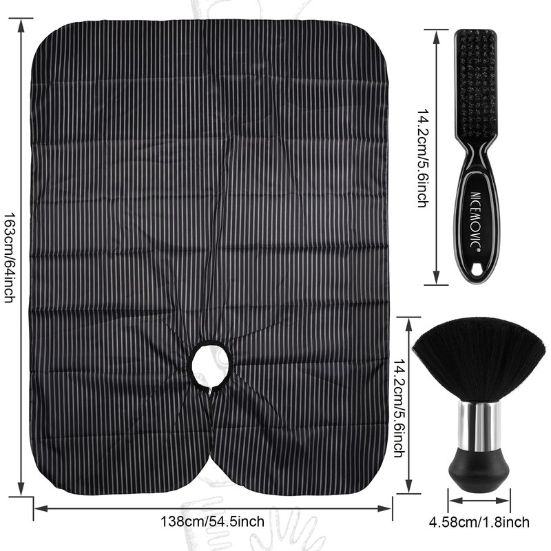 - 【PACKAGE INCLUDES】Essential barber accessories for barbershops and home barbers, 1 x Salon barber cape with snap closure, 1 x Neck duster brush, 1 x Barber cleaning brush. The perfect accessory for all barbers and stylists.