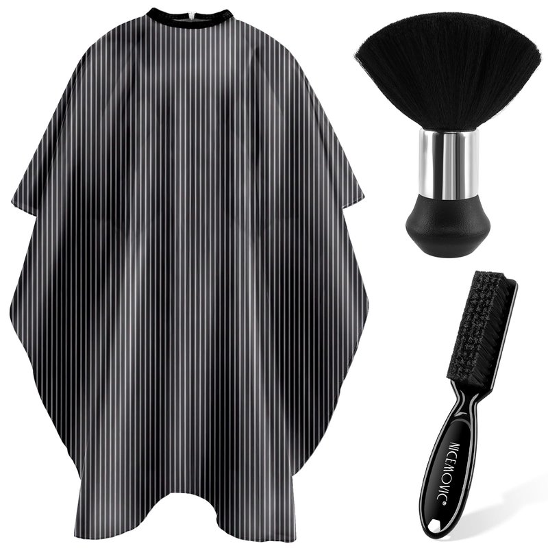 NICEMOVIC Hair Cutting Barber Cape with Neck Duster Brush and Barber Brush, Professional Barber Accessories Cleaning Supplies for Salon Haircut Styling (Black Stripe)