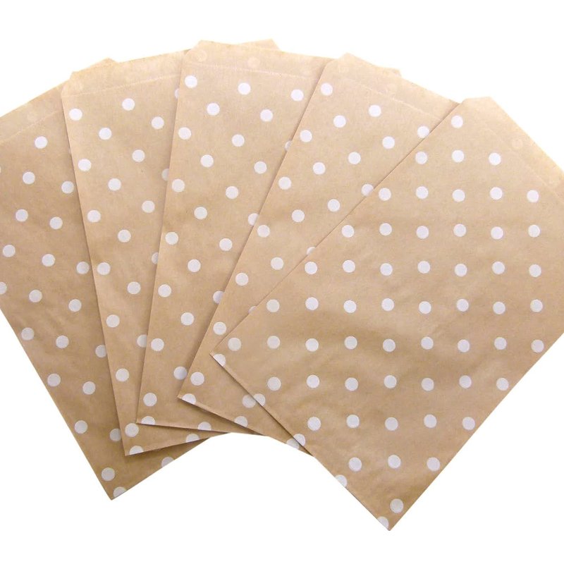 - Color – These bags come in a cool White Polka-Dot Pattern printed on a Brown Kraft Paper Bag! Use them at kids parties, for gifts, showers, merchandise and much, much more!!