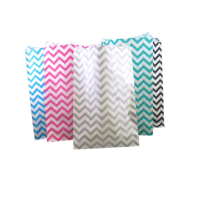 N'icePackaging 50 Qty 6" x 9" Mixed Chevron Flat Plain Paper Gift Bags or Patterned Decorative Bags for candy, cookies, merchandise, pens, Party favors, showers, holidays, events and gifts
