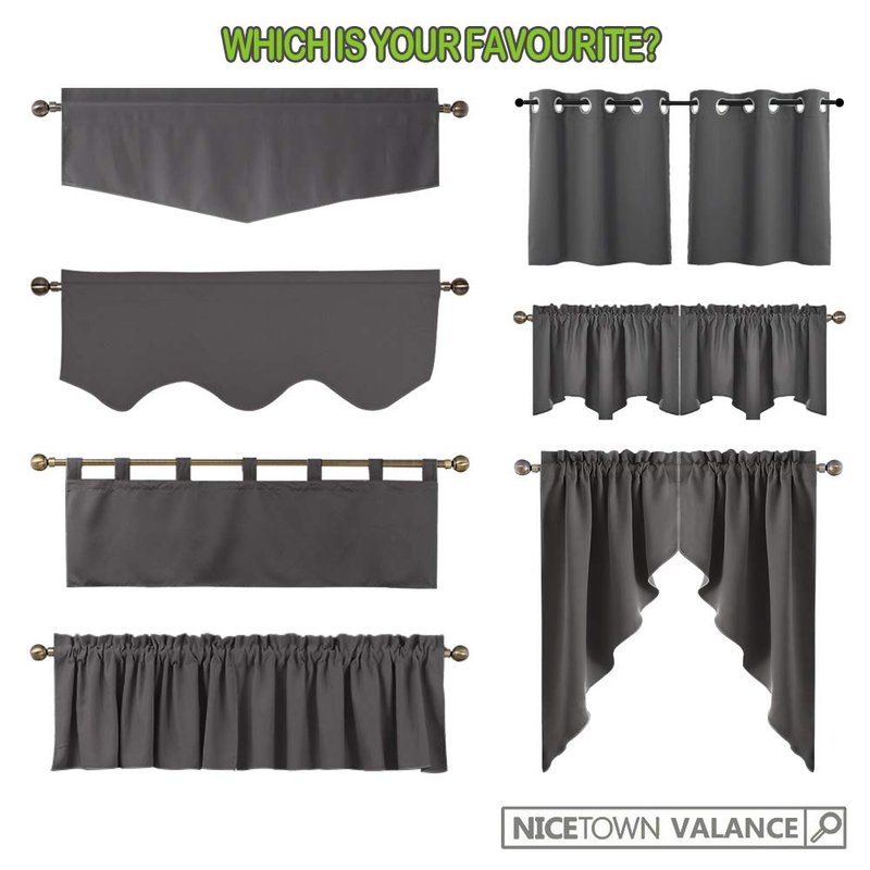 - Wide Compatible: Used to cover the upper part of windows, which is easily integrated with the kitchen, bathroom, laundry, dining room or anything you use. You can also use these along with NICETOWN's regular valances, tiers and curtains in your home.