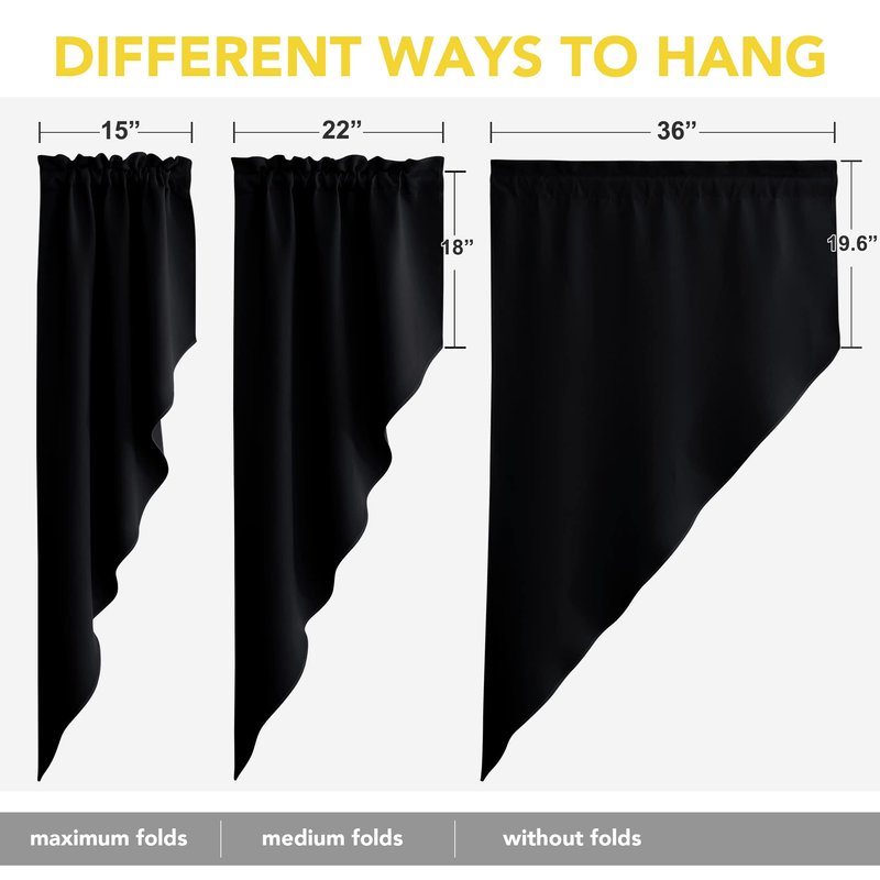 - Ready Made: The package includes 2-rod pocket Scalloped Swag Curtains, each panel measuring W36 x L63 inches and the length in the center is 18 inches. Rod Pocket (2.8" diameter) fits for all standard curtains rod and updates the look of your window in an instant.