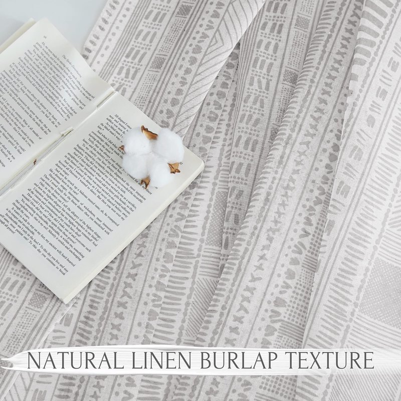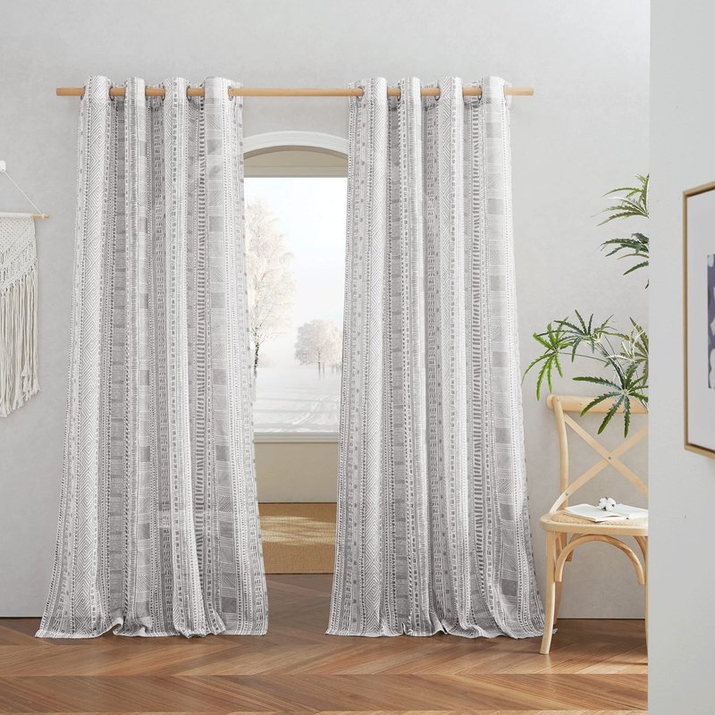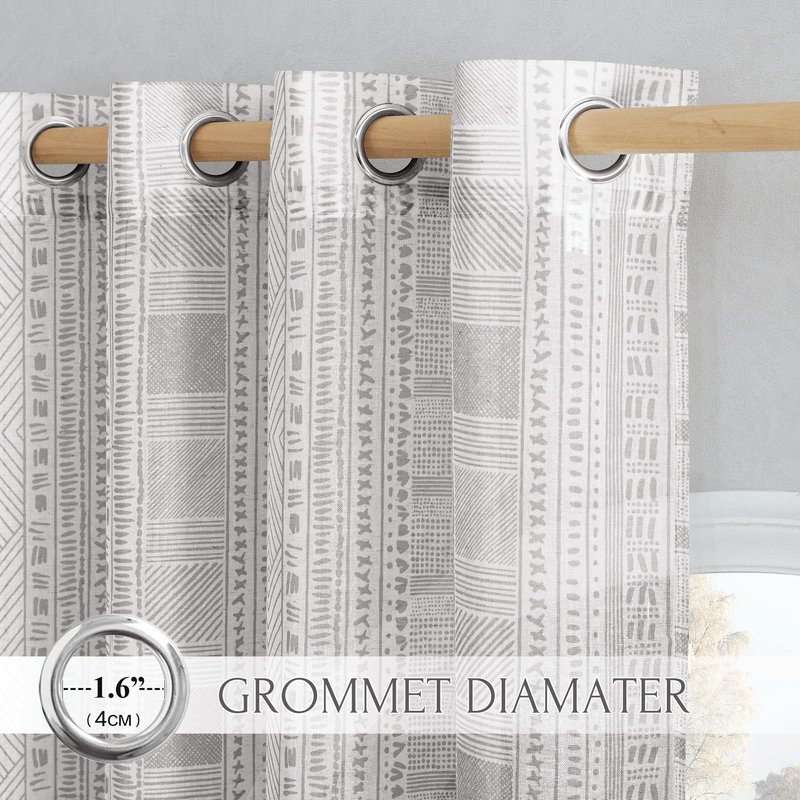 - Each package includes 2 panels linen-textured flax curtains. The pattern is print on the white background curtain and the classic bohemian pattern is easy-matching with all of your home decors. Each panel has 1.6" Grommets which can fit the most size rods in the market.
