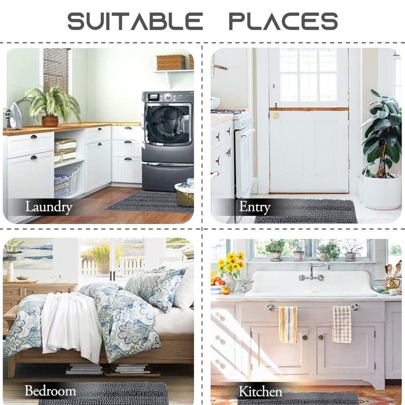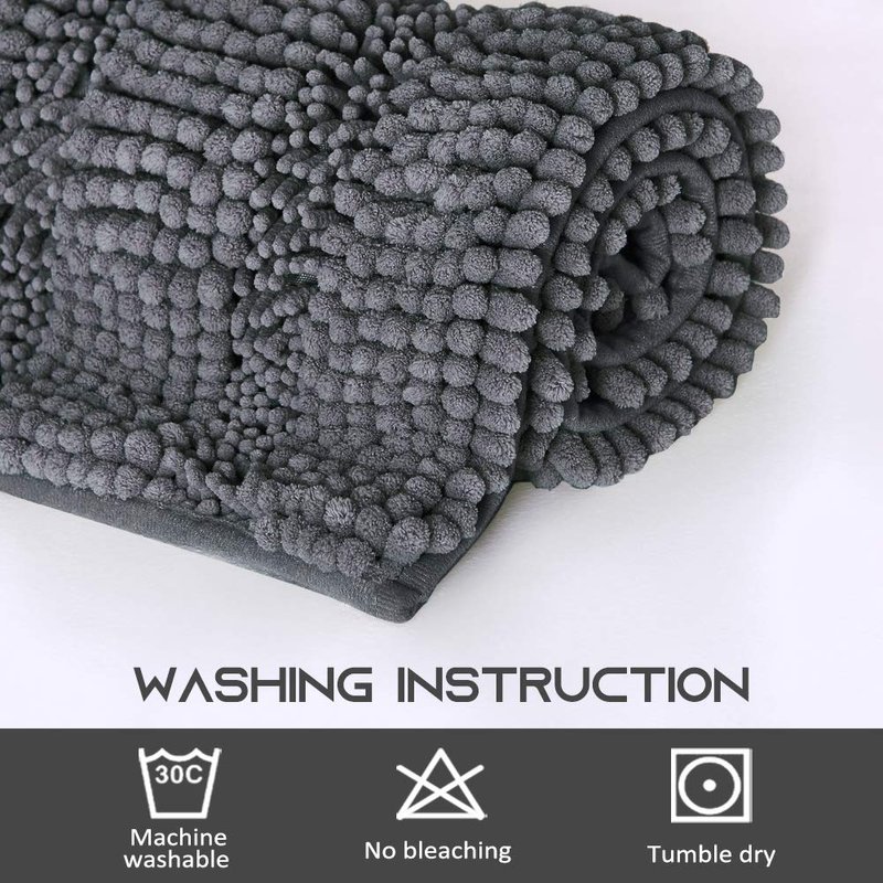 - READY MADE: This chenille bath mat is perfect for any bathroom. Package includes 1 piece 47" x 17" Mat. Scope of application: Bedroom, Living room, Hallway, Entrance, Balcony, Kitchen, Bathroom, Sofa, Car seat, Doorway, etc.