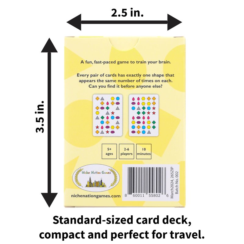 - FAST-PACED FUN: Sharpen your reflexes and observation skills with this fast-paced matching game! Quickly count the shapes and be the first to find the one that appears an equal number of times on both cards.