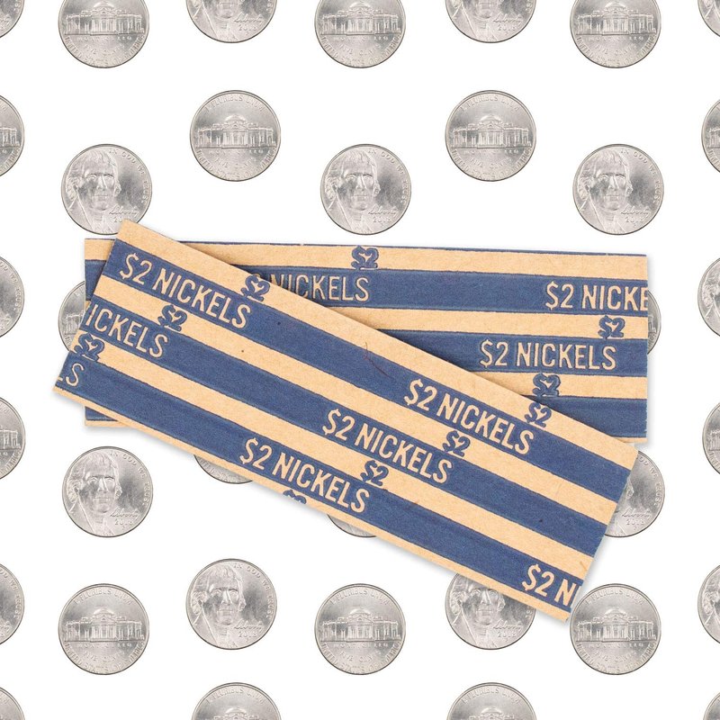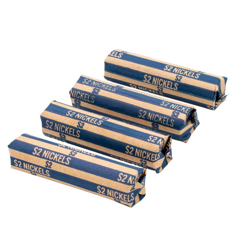 - Each wrapper is color-coded with a blue stripe containing the $2 nickel denomination and roll total for easy viewing and recognition