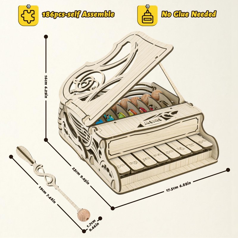 - 【 2-in-1 3D Wooden Music Machine】 This 186-piece puzzle combines a piano and percussion instrument, and can be used as a piano or a xylophone.It's perfect for music lovers and puzzle enthusiasts alike.