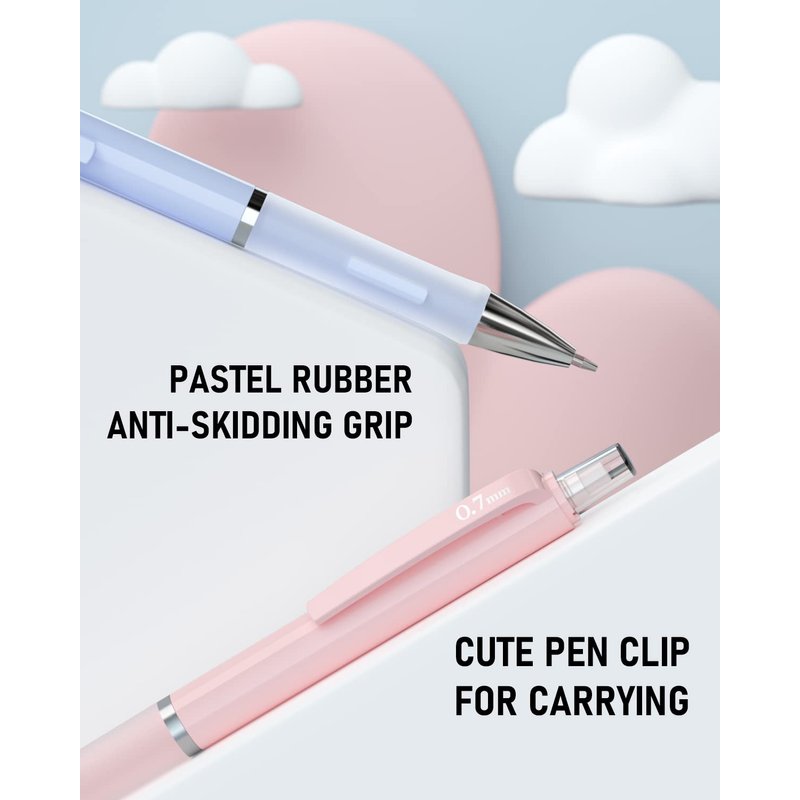 Nicpro 6PCS Pastel Mechanical Pencil 0.5 & 0.7 mm for School, with 12 tubes HB Lead Refills, 3 Erasers, 9 Eraser Refills For Student Writing,Drawing,Sketching, Blue & Pink & Violet Colors - With Case