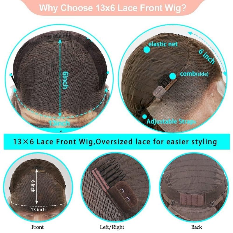 Hair Material: Brazilian Virgin Human Hair Wig 13X6 HD Transparent Lace Front Wigs for Black Women Wig Cap Type: 13X6 Lace front Wigs. Wig Hair Type: Wavy (Body Wave Lace front Wigs Human Hair). Wig Cap Size: Average Medium size With Adjustable Straps (22-22.5inches). Hair Density: 150% Density Human Hair. Wig Length: 12-16 inch available. Hairline: Natural Hairline with baby hair. Lace Type: 13X6 HD transparent lace color. Wig Special Feature: Glueless wigs human hair pre plucked. Wig usage scenarios: Used for Marriage, Travel, Anniversary, Work, Daily Life, Attending Dinners, Outdoor Activities, Swimming, Skydiving, Parent-child Contact, etc.