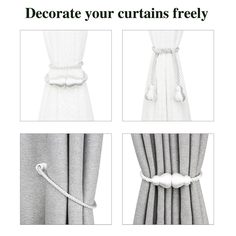 - High-Quality Materials-Handmade Magnetic Curtain Holders for Drapes, soft, and good feeling with woven texture appearance rope. Strong and not easily worn or pilling. Beige/Gold/Black/Silver/Grey/Coffee/Blue/Khaki -Eight colors to choose from. We will add more colors in the future.