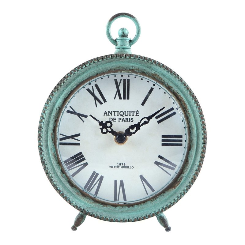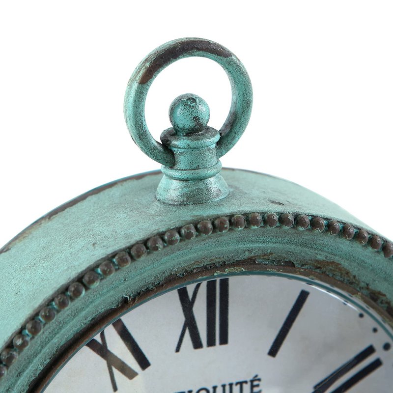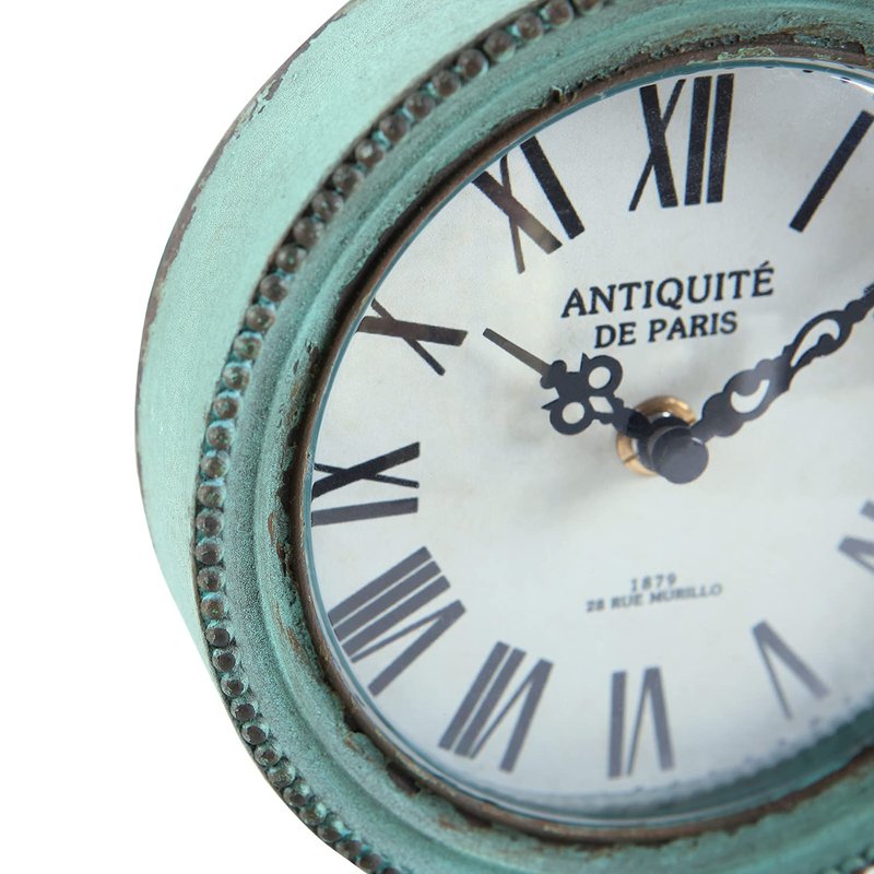 - 【 Vintage & Delicate 】 - Shabby chic pewter round table clock with beads, carefully painted in green color with rusty edge to give an old and shabby chic look, country-style inspired
