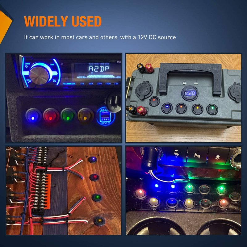 - Widely Application : Suitable for cars, ATVs, UTVs, Wranglers, RVs, off road vehicles, trucks, boats, marines, electronics modifications, etc. Can also use these on water dispenser, running machine, electromobile and other household appliances modification