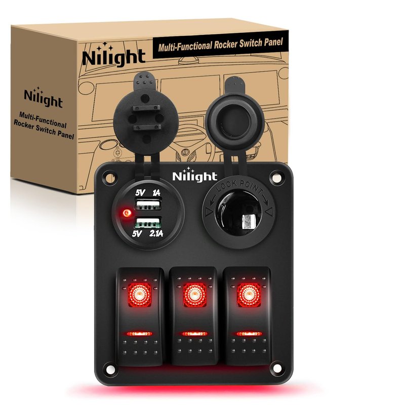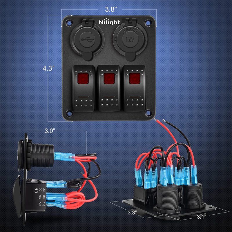 - Multi-functional Panel: 3 Gang switch panel with 12V cigarette socket and dual USB charger, great for all types of circuit control and charging needs. All-in-one design can be DIY used to control any vehicle electrical appliances. Universally fit for 12V-24V vehicles, widely applicable for trucks, jeeps, trailers, RVs, caravans, bus, marine boats, yachts,etc
